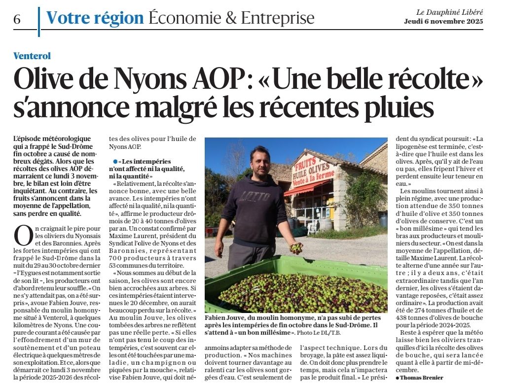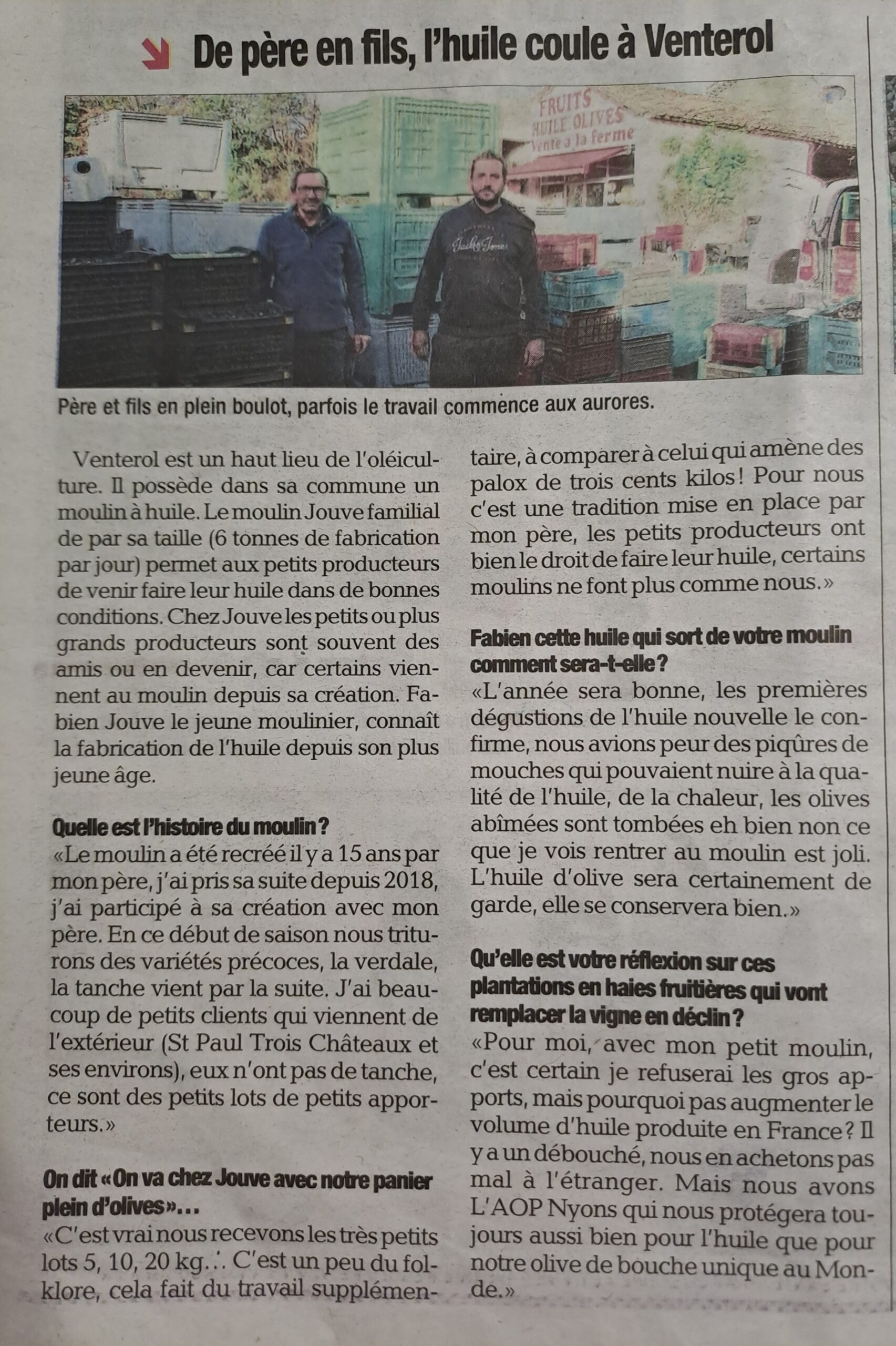 Voici l'article du Dauphiné Libéré du 6 novembre 25 sur le moulin Jouve